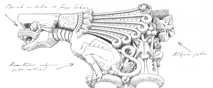 Restauració dels capitells de les columnes de la tribuna principal
