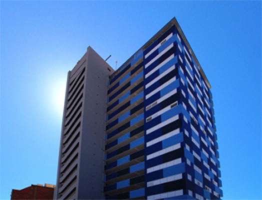 El gran edifici de Palamós sense bastida i en fase d'acabats